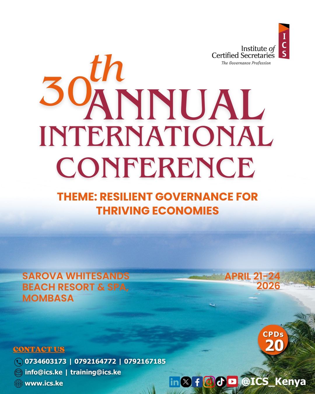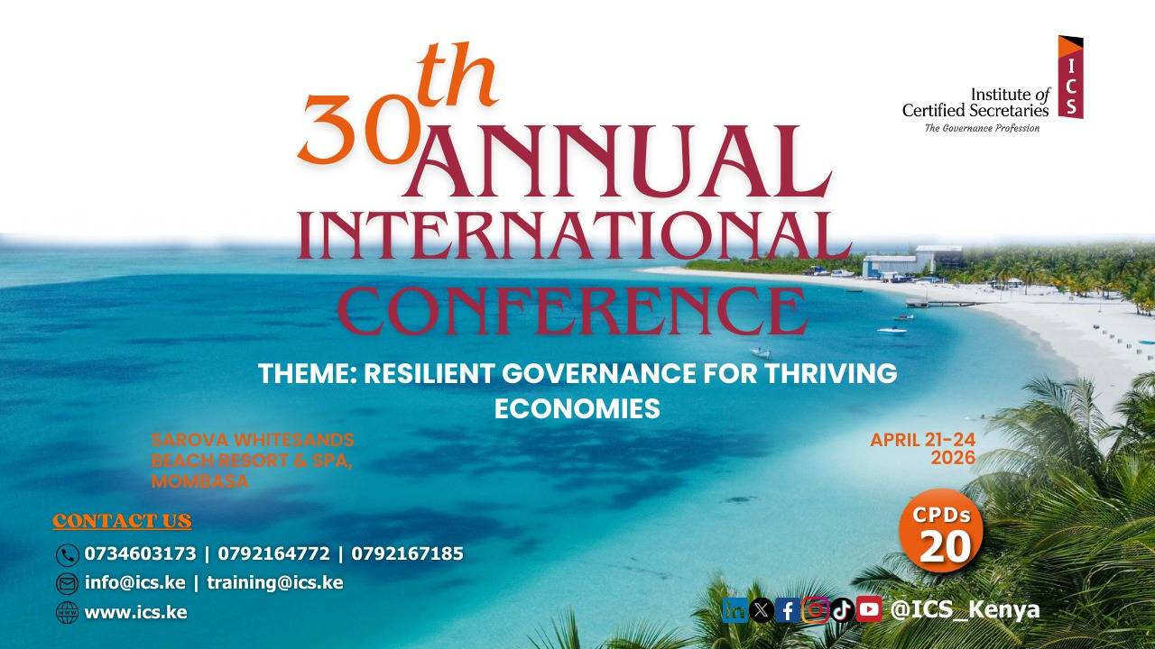 ICS COUNCIL MEMBERSICS COUNCIL MEMBERSICS 30th Annual DinnerICS 30th Annual Dinner29TH ANNUAL INTERNATIONAL CONFERENCE29TH ANNUAL INTERNATIONAL CONFERENCE COG 2025 LandscapeNEWSLETER AD LandscapeWGV SN3 POSTER Landscape Upcoming Events Filter By: ALL CONFERENCE INHOUSE WEBINAR Members Member Portal Resource Centre ICS Events Students Become a CS Training Institutions Public Search a CS ICS News Stakeholders Professional / Exam Bodies ICPSK Sacco Benevolent Fund